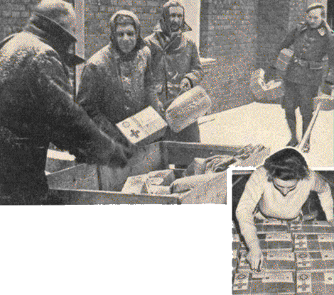 La llegada de los paquetes de la Cruz Roja llenos de comida y artículos varios a los campos de prisioneros aliados en Alemania suponen todo un acontecimiento en los campos. En la fotográfía inferior, los paquetes son franqueados antes de su envío en un centro de paquetes de la Cruz Roja.